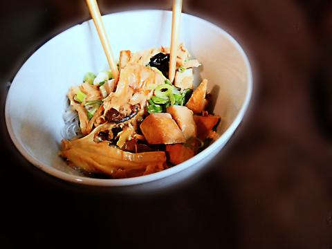 Yuba jest tu źródłem białka, którego w suchej masie zawiera aż 50% a pomidory umami.