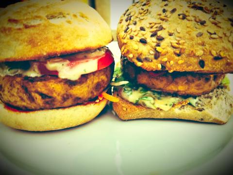 Można użyć dowolnego wegeburgera lub kawałka ładnie opieczonej w piekarniku lub na grillu weganiny. Ja będę testował w najbliższym czasie burgera z teksturowaną sojowiną.